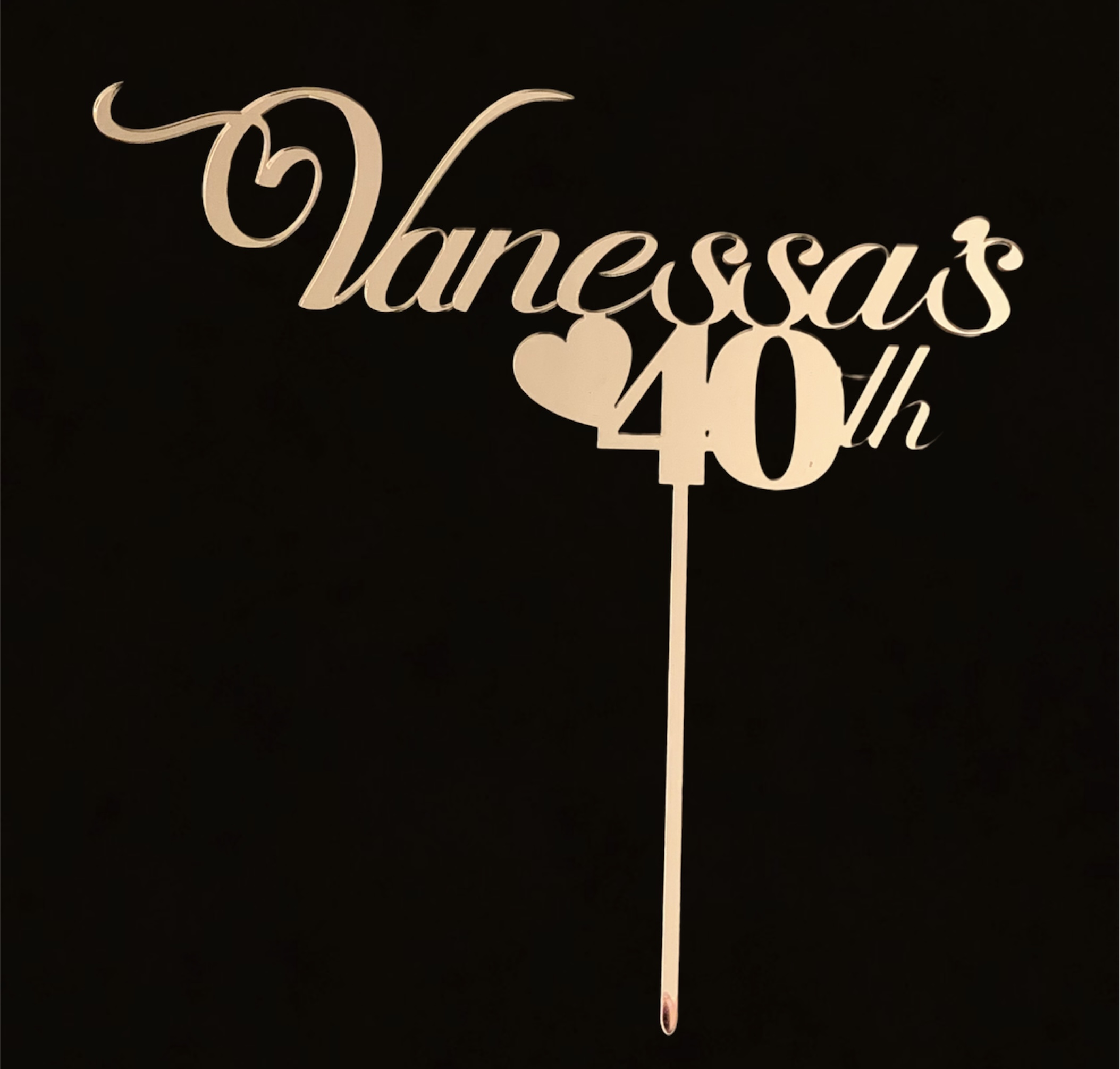 Make your cake shine with our Personalised Cake Toppers! Choose from silver, gold, or rose gold. Each topper is about +/-18cm x 18cm, including the stem. Perfect for adding a touch of elegance to your big day!