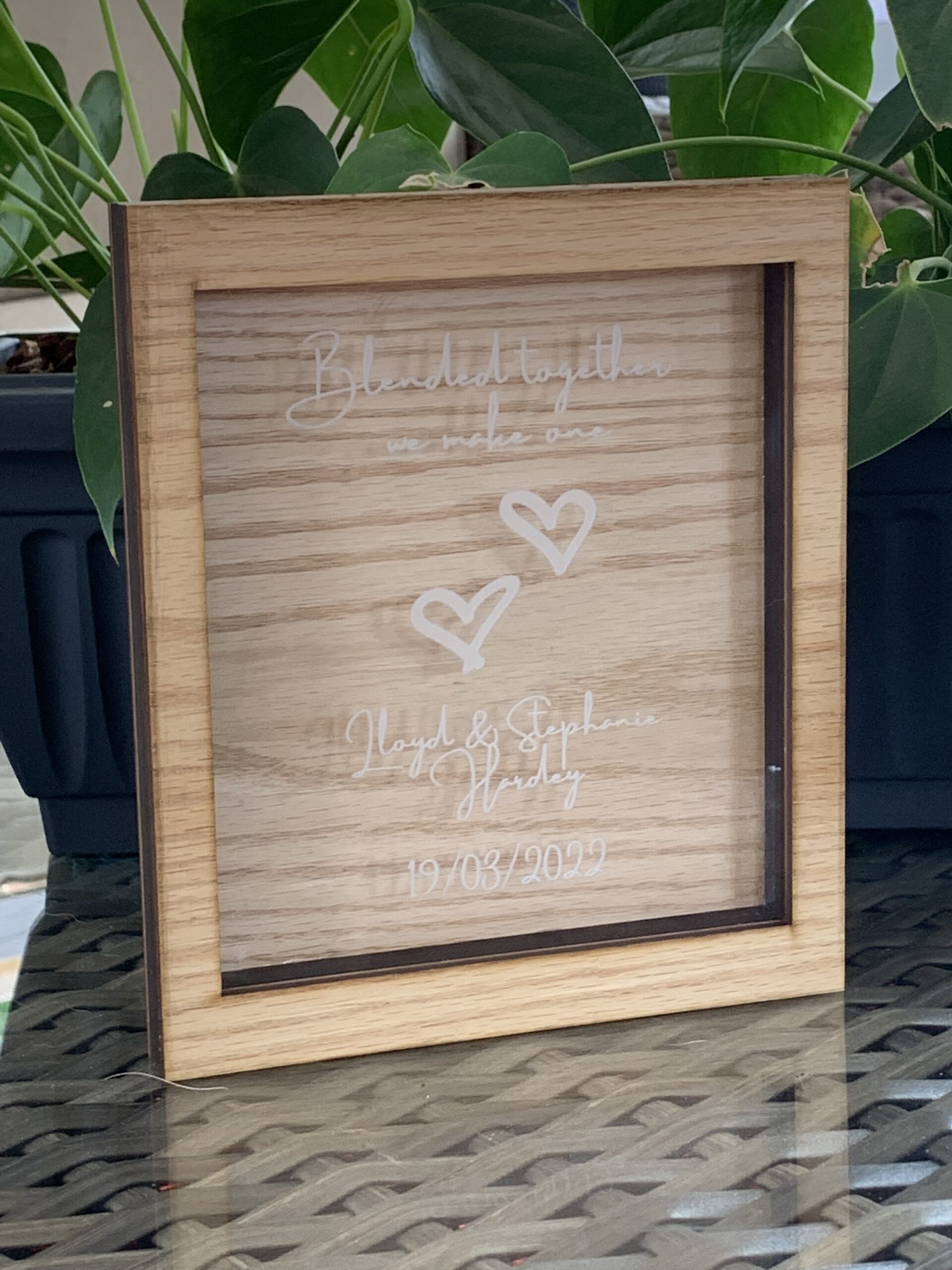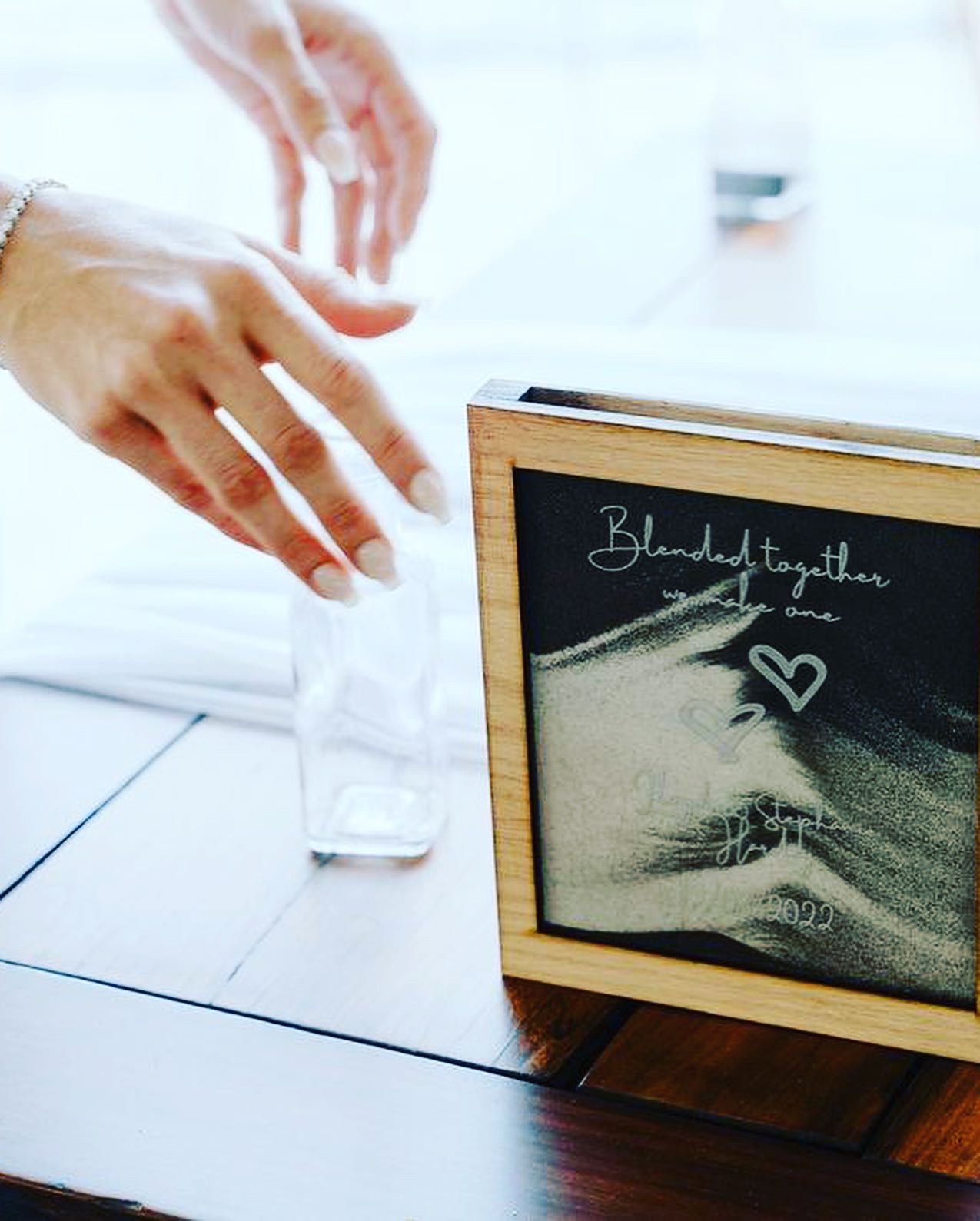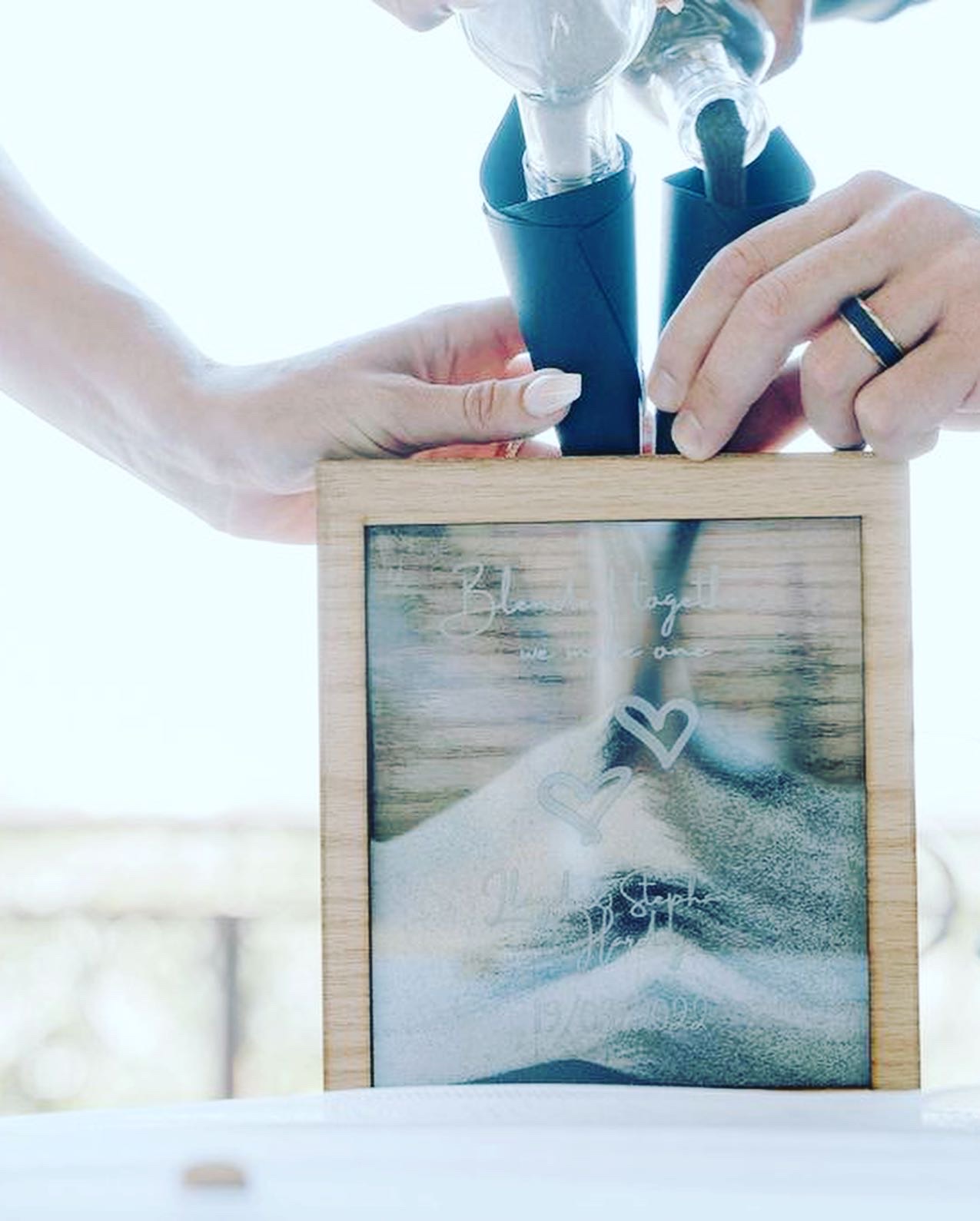 Personalised ceremony sand frame. Create a beautiful and unique story-telling piece with this unity ceremony sand box. This beautiful alternative to the traditional unity candle set is perfect for both indoor and outdoor weddings!